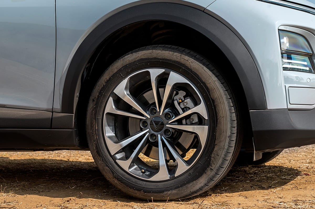 The VF6 gets a sole 59.6kWh battery option, with a single, front-mounted motor in two power outputs options – 177hp and 204hp. The former has an official MIDC range rating of 468km, while the latter is rated at 463km, which are not great numbers given the battery capacity. This could have something to do with the weight, which at 1,962kg for the lower-powered version and a portly 2,028kg for the more powerful one, is a lot for an EV of this size.