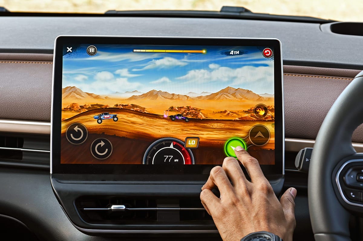 With virtually all vehicular functions relegated to the 12.9-inch touchscreen, it shouldn’t have been angled so sharply towards the driver, as it makes viewing and access tricky for the front passenger. It should also have been a better screen, with greater brightness, larger hit boxes, better responsiveness and slicker animations. That said, it is logically laid out, with most functions where you’d expect them to be, and you do get hard controls for media volume, hazard lights and door locks. There are also buttons to select the drive state; toggle switches arranged under the screen, which feel plasticky and call for a firm prod.