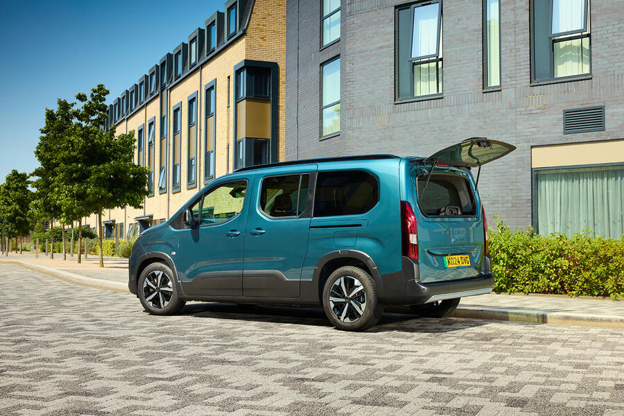 The e-Rifter shares its underpinnings with the Citroën ë-Berlingo, Toyota Proace City Verso and Vauxhall Combo Life Electric. That means a spacious cabin with room for up to seven people as well as equipment such as a 10in infotainment system, a digital driver’s display, overhead storage, rear parking sensors and a heated steering wheel as standard.