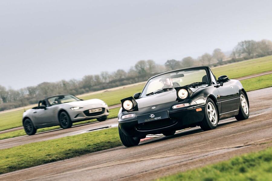 Murray Scullion:Â I love a ‘new versus old’ test, and this year I performed my favourite yet. The subjects were both Mazda MX-5s: NA versus ND, or Mk1 versus Mk4 if you prefer. A tried and tested recipe, but with a twist: the older of the two was powered by electricity.