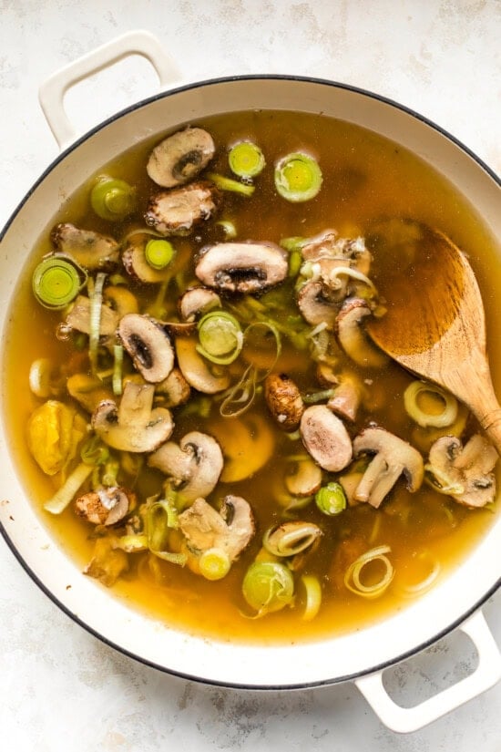 This high-protein, spring-inspired take on chicken and dumplings is just as cozy and comforting, with tender chicken, earthy mushrooms, sweet leeks, and peas simmered in a savory broth. I used my yogurt dumplings from my Skinnytaste Simple cookbook. They add a little more protein and come out so fluffy while soaking up all that flavor. My husband, Tommy, loved this dish so much that he even ate the leftovers (which he never does!) and asked me to make it again the next week.