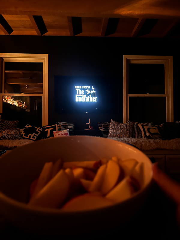 We watched The Godfather part 3 with apples!