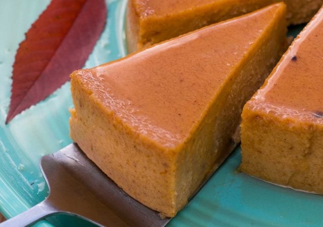 One of my favorite people, Ina Garten, provided the inspiration for this flan, a layer of creamy pumpkin custard bathed in a slick layer of dark caramel.