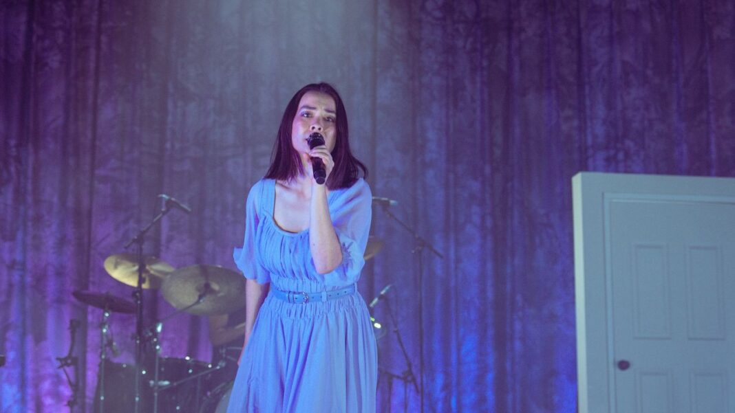 Mitski was the musical guest on last night’s episode of Jimmy Kimmel Live! Bejewelled, frilled, and draped in a regal coat, she sang the Nothing’s About to Happen to Me single “If I Leave” with her five-piece backing band. Check it out below.