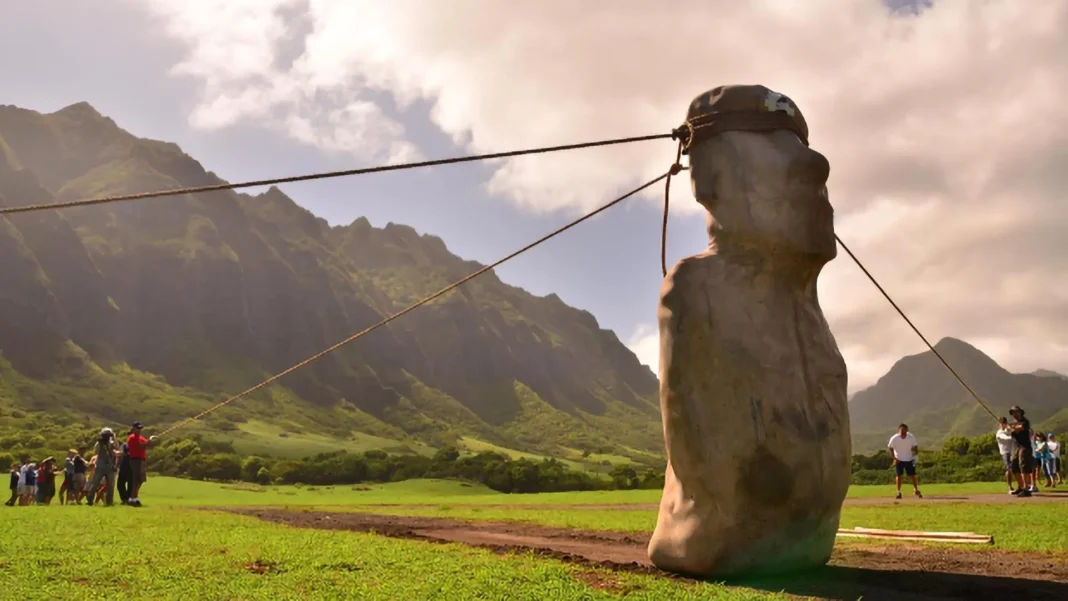 Putting their theory to the test, the team built a 4.35-ton replica moai with the distinct ‘forward-lean’ design. With just 18 people, the team was able to transport the moai 100 meters in just 40 minutes, a marked improvement over previous vertical transport attempts.