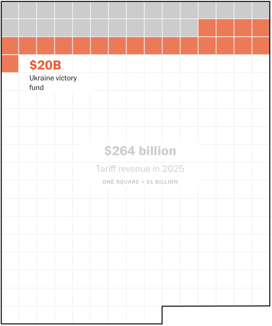 Each square represents one billion dollars of estimated tariff revenue. Squares are filled with each expense and total cost quickly escapes the bounds of available funds.